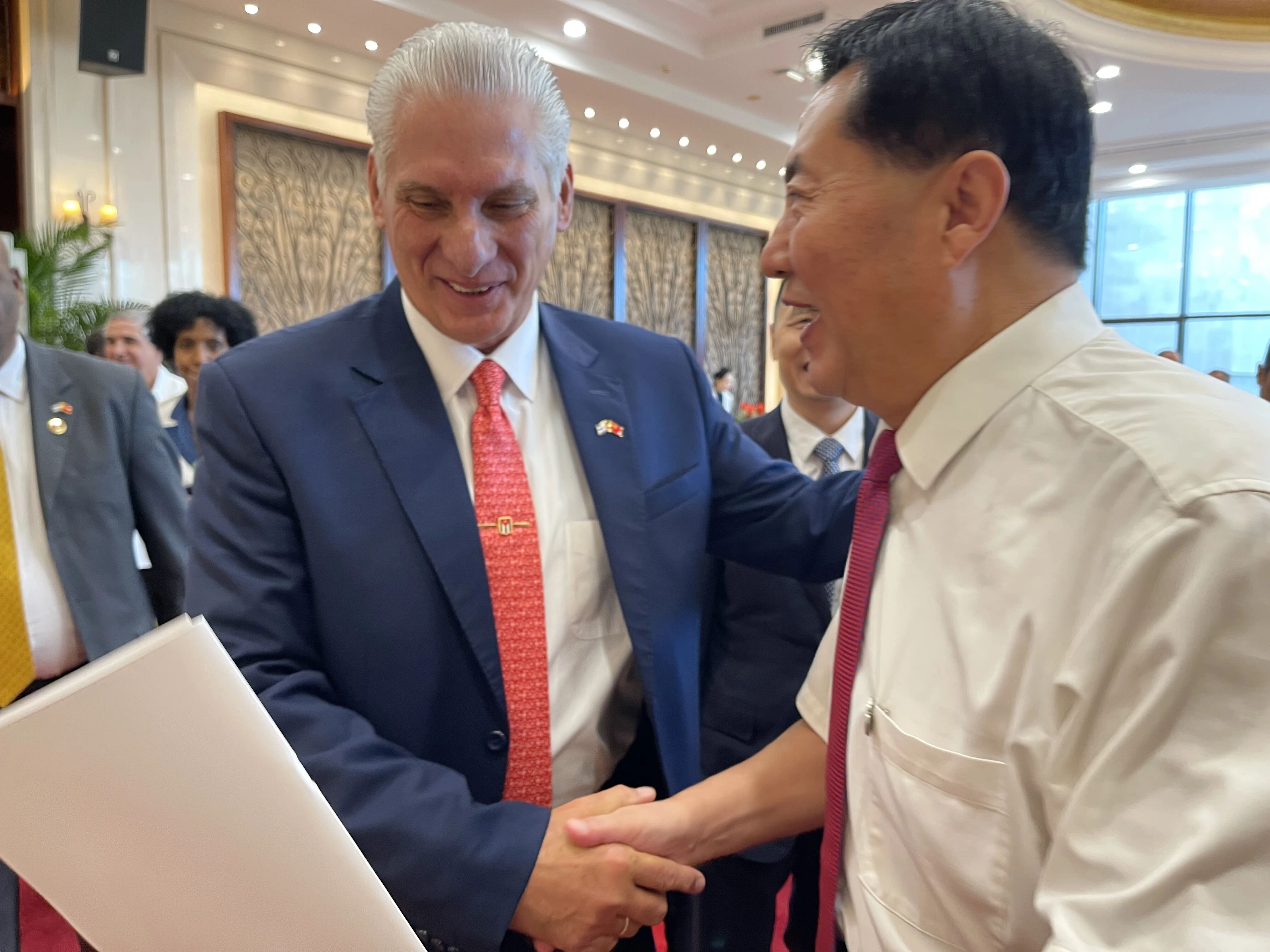 On September 6th, 2025, at the invitation of the Cuban side, Academician Sun Jianzhong, Chairman and President of Hebei International Studies University (HISU), joined the delegation of the Cuban President for a breakfast meeting in Shenzhen during his state visit to China. Miguel Díaz-Canel Bermúdez, First Secretary of the Communist Party of Cuba and President of the Republic of Cuba, held cordial talks with President Sun Jianzhong in a warm and friendly atmosphere. This meeting marked the second occasion on which President Sun and President Miguel Díaz-Canel have held talks. The extensive collaboration between HISU and Cuba has received close attention and steadfast support from the President Miguel Díaz-Canel.